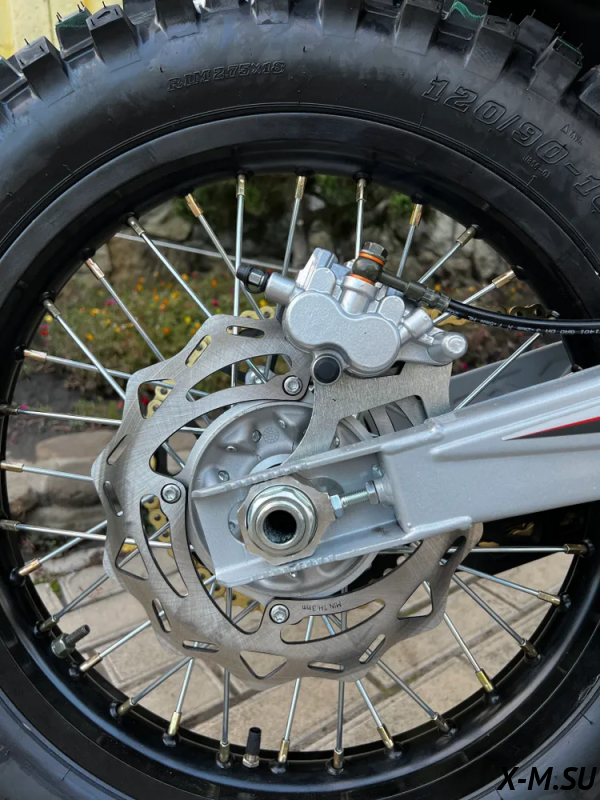 Мотоциклы EX-MOTO оснащены новейшими высококачественными гидравлическими тормозными суппортами. Прочная педаль заднего тормоза и тормозные диски диаметром 270 мм спереди и 240 мм сзади.