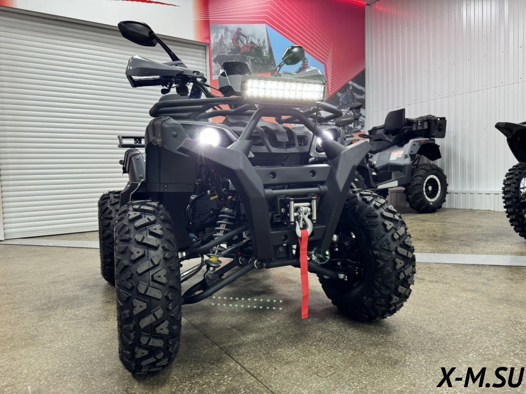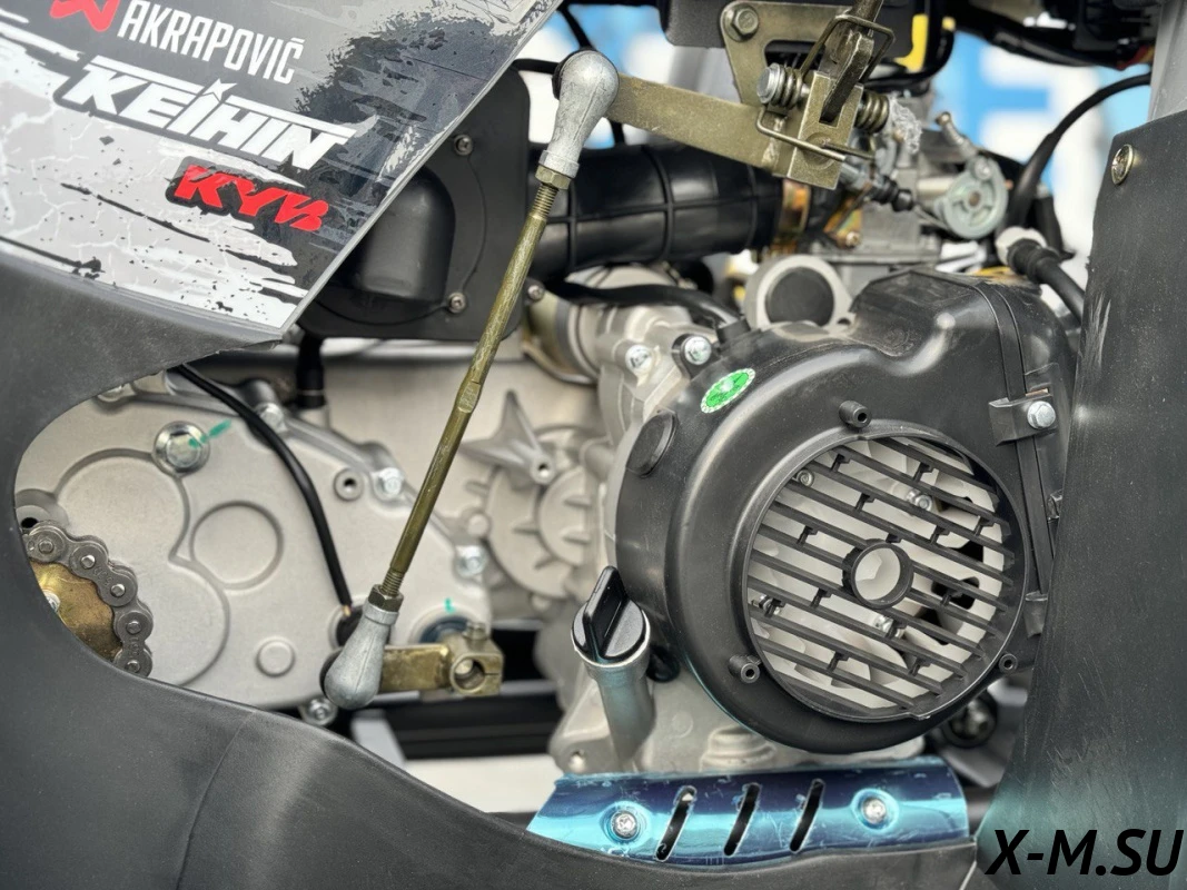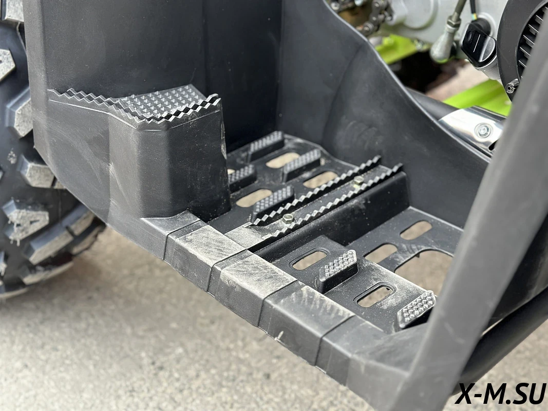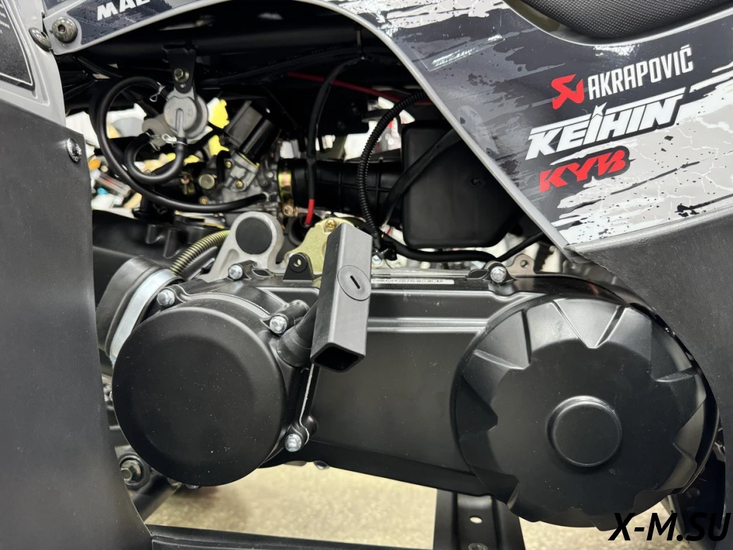 Внутри квадроцикла надежно спрятан одноцилиндровый четырехтактный двигатель с балансировочным валом ZONSHENG с сохранением мощности 22 л.с. с электрозапуском, а также герметичная электрическая система на базе японских комплектующих и аккумулятор повышенной емкости.