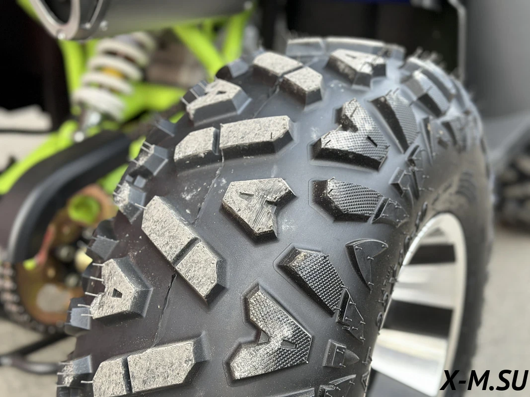 Соответствующая названию высокая мобильность, гарантия за счет резины, повышенная проходимость AT22x7-10 на передней оси и AT22x10-9 на задней, а также гидравлических дисковых тормозов.
